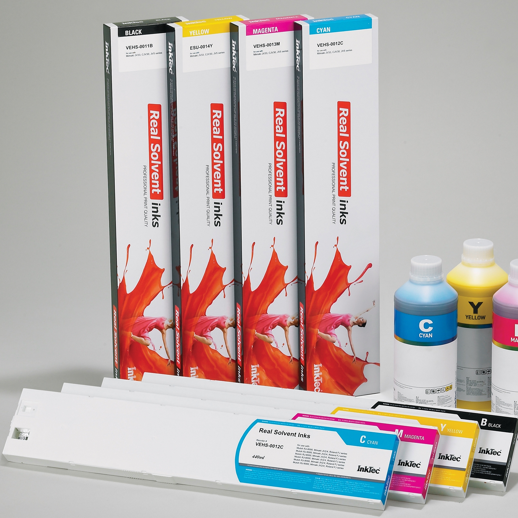 Tinta Inktec NEHS cartucho de 440cc, Solvente y de adhesión óptima en una amplia gama de soportes. Secado rápido. Amplia gama cromática.