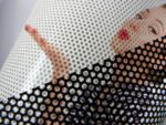 Vinilo blanco brillante microperforado adhesivado y con base negra